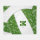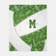 Esta única manta de pulpa temática de voleibol para ella presenta la imagen realista de un voleibol abstracto de gran tamaño que tiene paneles verdes y blancos - un continuo patrón de doodle de paisajes, flores y plumas en blanco cubre los paneles verdes del voleibol - personalizable con el nombre y monograma de la atleta, letra varsity o número jersey - por katz_d_zynes