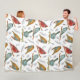 Una manta de lana con diferentes pájaros incluyendo cardenales, pájaros volantes, pollos y carniceros con plumas de tinta con acuarela. También tengo almohadas con este patrón en ellas. ¡Ideal para los regalos y la decoración de la casa!