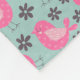 Un divertido, lindo, colorido, caprichoso diseño de flores y pájaros en el hogar, oficina y uso personal incluyendo tablas de borrado en seco, altavoces, organizadores de escritorio, fundas y mangas electrónicas, aglutinantes de correo, mousepads, cuadernos, relojes, carteras, espejos compactos, almohadas, bibs, papel envolvente, tazas y mucho más con un fondo azul con flores profundas y polka rosa.