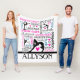 Esta manta del paño grueso y suave de la gimnasia ofrece un fondo blanco cubierto con términos de la gimnasia en una variedad de fuentes y de colores. Hay 4 diversas siluetas del gimnasta y un campo de encargo del texto a personalizar con un nombre antes de ordenar.
