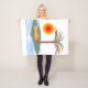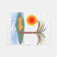 Manta de lana con mi original y simple pero colorido diseño vectorial de una palmera, sol naranja brillante y olas.
