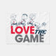 Echa un vistazo a Charlie Brown, Franklin, Peppermint Patty y Snoopy corriendo y jugando fútbol juntos con uniforme, con las palabras: "Ama el juego".