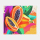 Vibrante ilustracion de arte pop de una papaya cortada con hojas tropicales, perfecto para el estilo veraniego (Este diseño hecho con IA). ¡Haga el pedido hoy y acepte la alegría de ir de compras!