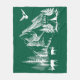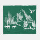 Detallada escena de acampada salvaje montañosa con tiendas de campaña, árboles, renos y aves, perfecta para los amantes del aire libre y decoración de temática aventurera.