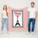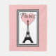 Ilustracion de París con Torre Eiffel y decoración cardíaca en rectángulos blancos y negros sobre fondo rosa
