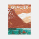 Diseño artístico vectorial del Parque Glaciar. El parque es una zona salvaje en las Montañas Rocosas de Montana, con picos y valles tallados en glaciares que corren hasta la frontera canadiense.