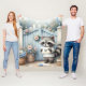 A gentle cottagecore scene unfolds as a wide-eyed raccoon stands before a pale blue garden gate, holding a flower-tied letter as blossoms spill softly from woven baskets. The mood is tender and storybook sweet, blending whimsical charm with pastel florals, warm woodland character, and a dreamy watercolor glow. The soft blues, blush pinks, and airy neutrals create a serene, heartwarming aesthetic that feels like a quiet moment of magic waiting to be shared. AI generated artwork.