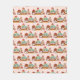 Una manta estampada con una hilera de deliciosos quequitos con batidos y cerezas y deliciosas heladas. Ilustrado en un estilo retro clásico. Los colores son retro verde, rojo, azul y crema.
