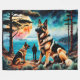 Pastor alemán descansando luego de caminata a la cima de la montaña dominando el arte AI del océano por minx267