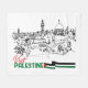 Los hogares palestinos tradicionales se mantienen orgullosamente, simbolizando el legado perdurable y la firme esperanza de regresar, con las palabras "Visita Palestina" desplegadas junto a la bandera palestina.