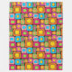 Un colorido patrón abstracto de inspiración étnica compuesto de cuadrados dibujados a mano.
