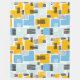 Patrón abstracto original, sin fisuras, de muchas formas planas o tonales, adornadas con líneas y puntos adicionales.