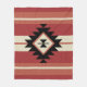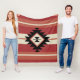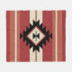 Patrón bohemio étnico azteca con formas geométricas en rojo, naranja, gris y negro sobre fondo rayado