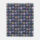 Manta de lana con temática de festividad azul oscuro con colorido collage de playa ilustrado.