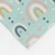 Una manta adorable. Arcos de colores en tonos rosa, azul y verde. Pequeños corazones y círculos le dan un toque de fantasía. Qué femenina y divertida.