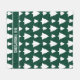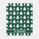 El patrón original de Destei de Navidades blancos simples abren siluetas de árboles en un color de fondo verde. También hay un área de texto personalizable para un nombre u otro texto personalizado.