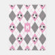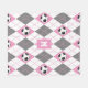 Esta manta de pulpa adorable con temática de fútbol presenta un patrón de yeso rosado, gris y blanco con "puntos" rosas que se extienden diagonalmente a través de las formas de diamante y bolas de fútbol negras y blancas que se extienden por encima de las formas rosadas de los diamantes - personalizar con el monograma del atleta - de katz_d_zynes