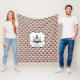 Esta manta de lana de bonito presenta un patrón de aspecto damasco con un motivo de gato lineal en una posición relajada rodeada de hojas de pipa y flores en una silueta negra. El texto y el color de fondo son sencillamente personalizares y se adaptan a su estilo y decoración.