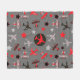 ¡Estos niños brillantes y coloridos cobertizan con aeroplanos rojos, negros y grises volando por todos lados! Hay dos estilos de planos con diferentes patrones y colores. Entre los aviones hay estrellas rojas, negras y grises. En el centro hay un avión rojo enmarcado en un círculo negro. Todo está colocado sobre un fondo gris medio. ¡A cualquier chico que ame los aviones y los vuelos le encantará esta manta!