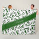 Este bonito equipo de voleibol colorea la manta de pulpa para los chicas con un patrón variado de bolas de voleibol estilizadas verdes, grises y blancas que se dan vuelta por todas partes sobre un detalle de red de voleibol - los paneles verdes y grises de las bolas de voleibol se mezclan con un patrón artístico y giratorio - personaliza su nombre con un sofisticado tipo de letra escrito a mano en una franja de color negrita, angloria, ancho y ancho completo de color verde - personalizable - por katz_d_zynes