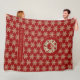 Elegante Personalizado Fleece Blanket Snowflakes Pattern Red y Gold Faux Relieve metalizado dorado Navidades Wreath Añadir nombre de familia o tu texto