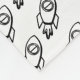 Esbozo en blanco y negro de un cohete que vuela hacia arriba con fuego saliendo al final.