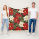 Manta Polar Patrón de flores de poinsettia verde rojo blanco