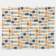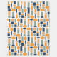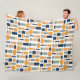 Esta gran manta de lana tiene un diseño moderno de ovarios y rectángulos en patrones que se repiten en el diseño.