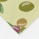 Un patrón veraniego de oliva y oliva. Un bonito diseño rústico para los amantes de las aceitunas, el aceite de oliva y la cocina mediterránea. Ilustracion de frutas de oliva de verano colorido con tonos verde oliva y borgoña. Diseño muy cuidado para los amantes de la cocina toscana, griega, italiana o española. ¡Vacaciones ruidosas de verano! Regalo de cumpleaños ideal, decoración de guardería, arte de habitación para niños, decoración de casa, regalo de Navidad o regalo para cualquier otra ocasión especial.