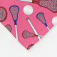 Patrón de lacrosse deportivo moderno y de moda con palos lacrosse rojos y azules y una bola de goma blanca con fondo rosa y con banda negra rosa personalizada con sólo añadir su nombre regalos o regalos monogramas o sus iniciales para un regalo único. Ideas deportivas para hombres y niños y chicas. Ideal para los cumpleaños.