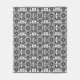 Manta de lazo en un patrón de mandala de doce puntos en tonos grafito y gris plateado, acentuado con negro y blanco