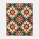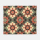 Esta obra de arte presenta un intrincado patrón de medallón con motivos simétricos florales y geométricos. El diseño es rico en detalles, mostrando formas entrelazadas en una armoniosa paleta de colores de rojos cálidos, cremas suaves y verdes mullidos sobre un fondo negro profundo. El arreglo repetitivo y equilibrado de los elementos crea una sensación de orden y elegancia, que recuerda a los diseños clásicos de baldosas y a las obras de arte ornamentales. La combinación de colores en negrita y patrones complejos añade profundidad e interés visual a la composición general.