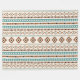 Motivos combinados de estilo azteca en color verde azulado, terracota y detalles negros en un fondo de color crema. H = Patrón horizontal.
