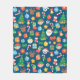 Alegre patrón de Navidades multicolores con santa, renos, elfos, muñecos de nieve, oso polar, regalos, arcos rojos y verdes, decoraciones, latas de dulces, medias rojas, etc.