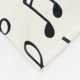 Una manta con un diseño musical. Un patrón con arpa temblorosa, bajo y otros símbolos musicales.