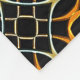 Un diseño bello, intrincado y geométrico de un nudo celta azul naranja y grisáceo sobre un fondo negro, con una textura moderna y metálica.