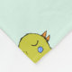 Una manta con un patrón de pájaros caprichosos dibujados a mano. Pequeños pinos verdes entre ellos. Fondo verde suave.
