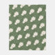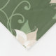 Esta manta de lana verde salvia oscura presenta un elegante patrón de puninsettia blanca acentuado por los movimientos verdes claros.