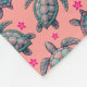 Un tejido alegre y lúdico con tortugas marinas y flores de coral sobre un fondo de melocotón. Ideal para la decoración o el vestido de casa con temática playera.