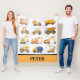 Diseño de manta de felpa con patrón de acuarela de vehículos de construcción amarillos lindos personalizados.