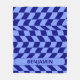 Funda personalizada con estampado a cuadros con distorsión ondulada y nombre personalizado en azul marino y azul claro.