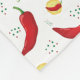 Si te gusta el chile rojo, este es tu aspecto. Un elegante patrón de grandes pimientos de chile rojo mezclados con versiones más pequeñas en círculos amarillos. Muchos puntos verdes y rojos llenan espacios abiertos con un fondo blanco. También viene en un patrón de chile verde. productos a juego disponibles.