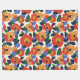 Un diseño floral abstracto, vibrante y audaz, con grandes flores rojas, naranjas y azules con hojas verdes y navales sobre un fondo crema. Las formas lúdicas y los colores vivos crean una estética artística moderna, perfecta para tejidos, tapices o estampados decorativos.