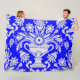 Manta Polar Patrón floral de Damasco azul y blanco elegante