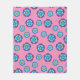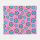 Ilustracion de un patrón azul de flores violeta en fondo rosado para la primavera. Este diseño floral es una idea de regalo para los amantes de las cosas femeninas, de primavera y verano.