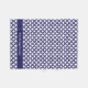 Elegante manta con motivos geométricos modernos de color azul marino y blanco con una franja de texto editable en la parte inferior para que añada sus nombres o mensajes