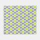 Esta manta de lana presenta un patrón hexagonal geométrico colorido en verde lima y gris.