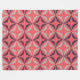 Patrón geométrico moderado retro de formas en azul marino y agua sobre un fondo de coral rojo.