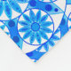 Manta de lana en un patrón de mandala de doce puntos en tonos cobálticos y azul ceruleño con turquesa y agua, acentuada con blanco