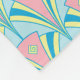 Un diseño retro que expresa art déco en la Miami de los años 50 con un diseño en forma de ventilador rosa, amarillo y azul turquesa sobre un fondo azul claro traerá color fresco a tu hogar.